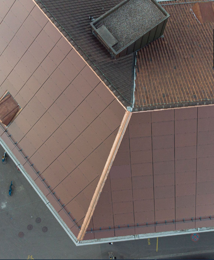 Besonders bei denkmalgeschützten Gebäuden und in historischen Stadtkernen ist eine sensible Integration von Solartechnik essenziell. Unsere speziellen Module fügen sich nahtlos in bestehende Dachlandschaften ein, ohne das gewohnte Erscheinungsbild zu beeinträchtigen. Selbst exponierte Süddächer lassen sich so diskret und wirkungsvoll mit Solarmodulen ausstatten. Besonders gut passen die Farben Terracotta und Dark Brown für denkmalgeschützte Gebäude, da sie die Farben von alten Tonziegeln nachahmen.